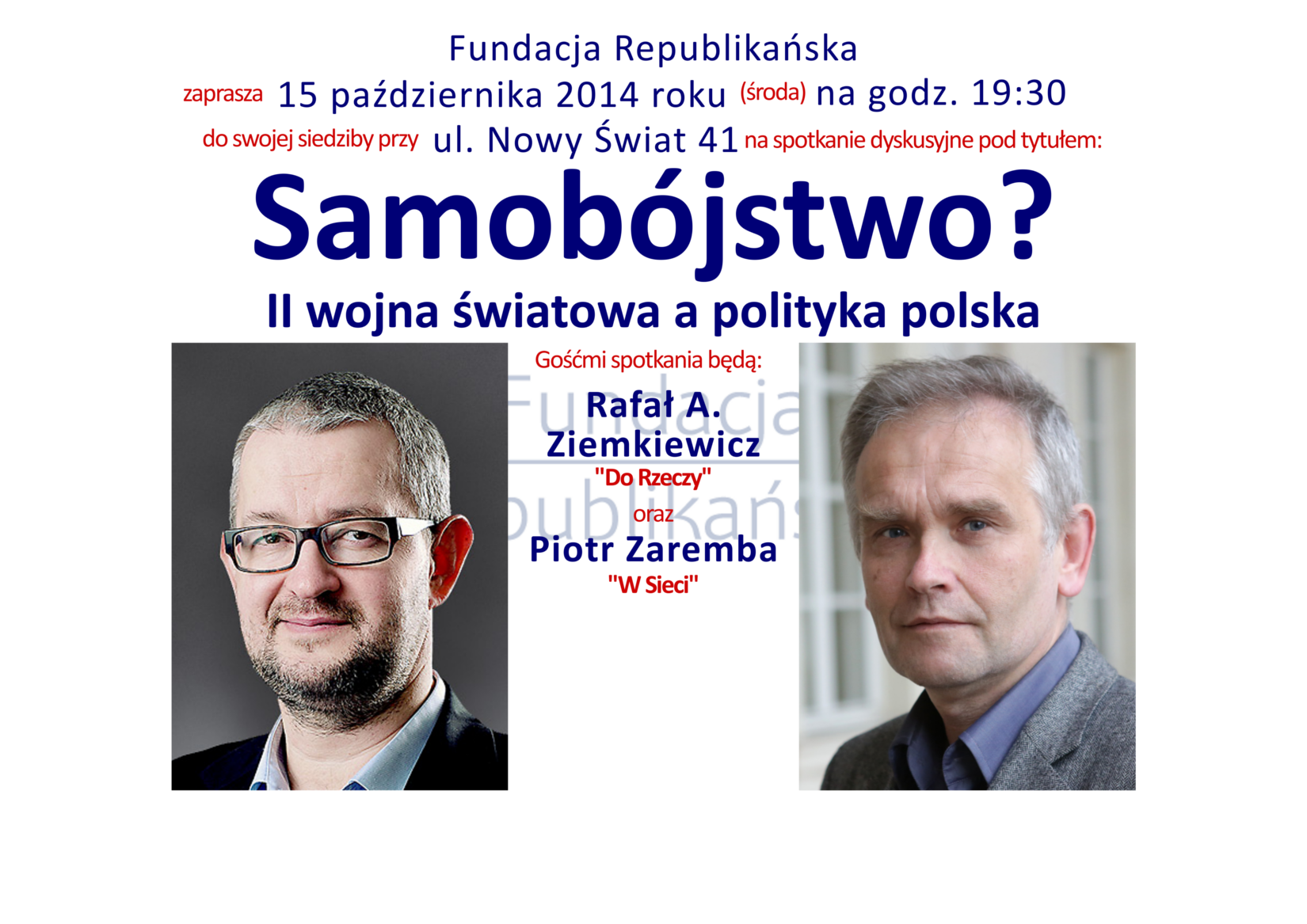 Piotr Zaremba oraz Rafał A. Ziemkiewicz, 15 października o 19.30 w Fundacji Republikańskiej na Nowym Świecie 41 w Warszawie spierać się będą na debacie pt.: